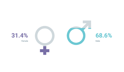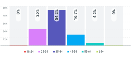 Die Hälfte der Postings stammt von Besucher*innen zwischen 35-44 Jahren. Rund 20 % verteilen sich auf die Altersgruppen davor und danach. Mit zwei Dritteln überwiegt der Anteil der männlichen Nutzer am Beitragsvolumen.