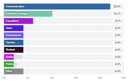 Aus der Kommunikationsbranche kommen 35 % der Nutzer*innen. Mit deutlichem Abstand folgen Vertreter*innen aus Führungs- und Beratungsfunktionen. Daraus lässt sich ableiten, dass der Kommunikationskongress seine Zielgruppe zuverlässig erreicht.