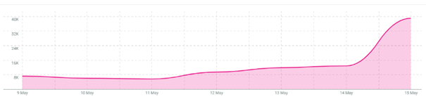 Schaut man sich das Beitragsaufkommen (Analysezeitraum: 09.05 – 15.05.2022) zur letzten Landtagswahl (in Nordrhein-Westfalen) an, wird deutlich, dass die Wahl in Niedersachen tatsächlich mehr mediale Resonanz erhielt (+27 %).