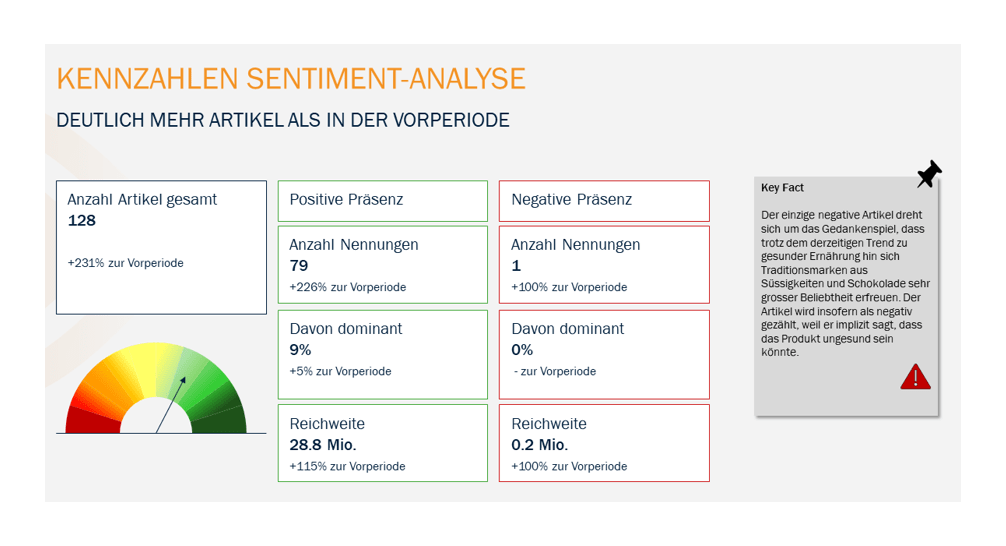 Die Sentiment-Analyse liefert Informationen über die Wahrnehmung Ihres Unternehmens und gibt Einblicke in die Tonalität der Berichterstattung.